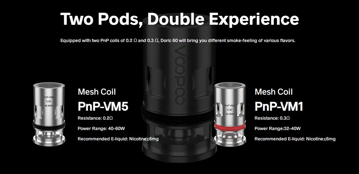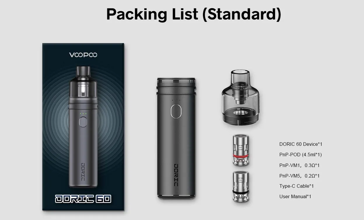 Voopoo Doric 60 Pod System Kit, Inspired by the mysterious pillars of the ancient Roman pantheon, Doric 60 is a pod device with stylish look and long battery life. Voopoo Doric 60 features auto & button modes and innovative infinite airflow system to help vapers switch DTL to MTL vaping. Voopoo Doric 60 Pod Kit works with 2500mah battery with type-C fast charging. Doric 60 utilizes GENE chip with 5-60W output and 3-color LED lights to show output. Voopoo Doric 60 has 4.5ml magnet cartridge with bottom filling design. Voopoo Doric 60 cartridge is compatible with all PNP coils.