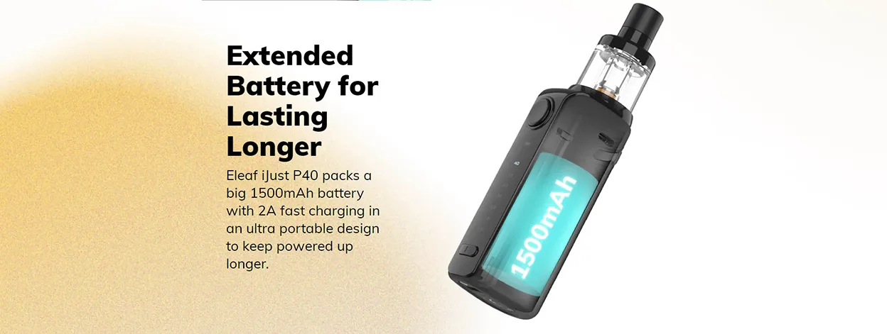 The Eleaf iJust P40 Starter Kit, offering a 1500mAh battery, 40W output maximum, and is natively paired with the 3mL iJust D20 Cartridge. Constructed from durable zinc-alloy, the chassis of the Eleaf iJust P40 Kit is lightweight and incredibly portable, easily fitting within the palm of the hand. Trading a screen for LED indicator lights, the iJust P40 Pod System further extends the battery life and adopts a chassis-based airflow control switch, carefully closing or opening the dual slotted design along the side of the device. The small footprint delivers a strong performance, utilizing the GTL Coil Series to output delicious vapor and flavor from the 0.4, 0.8, 1.2ohm coil options. The iJust P40 can also recommend the best wattage level for the coil and automatically remember your usual setting. The optional power levels and adjustable airflow can fully customize your vaping experience. The iJust D20 Pod Cartridge features 3ml capacity and easy top refilling system. It is compatible with all GTL Coil to bring you enhanced flavor and RDL/DL vaping.