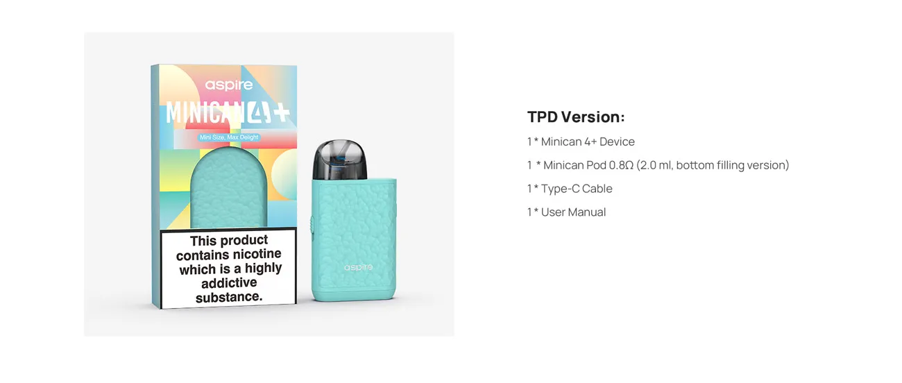 The Minican 4 Plus Pod is a streamlined vape with a 1000mAh battery, fast 2A charging, and adjustable power from 5 to 20 watts. Its 0.69inch OLED screen offers precise control, and adjustable airflow tailors the vaping experience. Compatible with Minican series pods featuring meshed coil technology, it delivers a perfect balance of flavour and clouds.