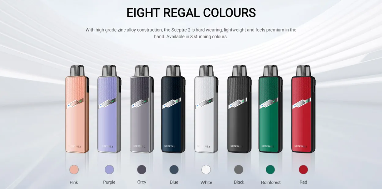 Sceptre 2は、オリジナルモデルよりもさらに小型化され、これまで以上にポケットに収まりやすくなりました。高品質の亜鉛合金製のため、Sceptre IIは耐久性があり、軽量で、手に持ったときの高級感があります。1400mAhの内部バッテリーを搭載しており、Sceptre IIは終日 vaping パフォーマンスを提供します。3mlのリフィル可能なポッドを採用し、Sceptre 2 Pod KitはInnokin S Coilシリーズのコイルを使用して、優れたフレーバーと煙を実現しています。USB-C充電ポートは、外出先でも安全で信頼性の高い充電を可能にします。